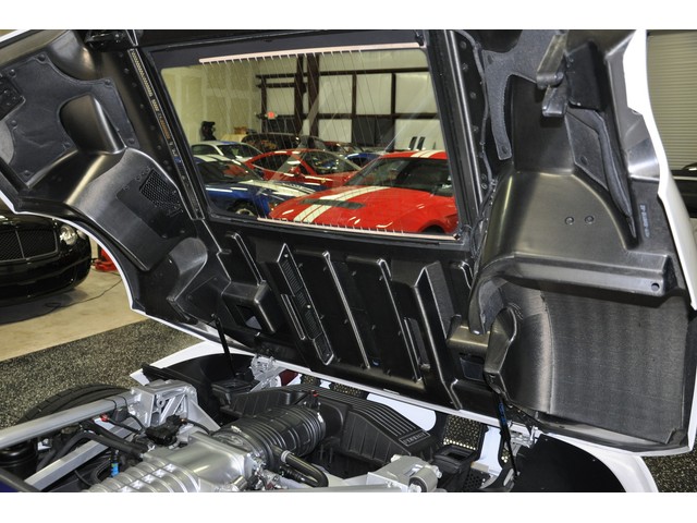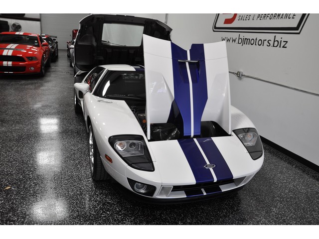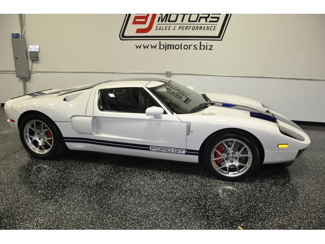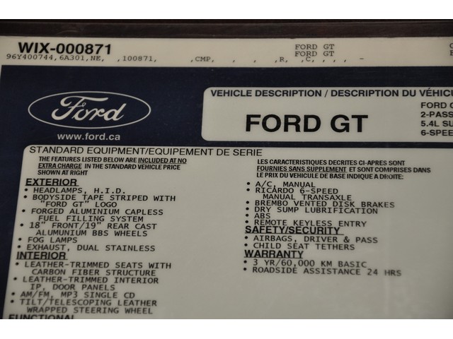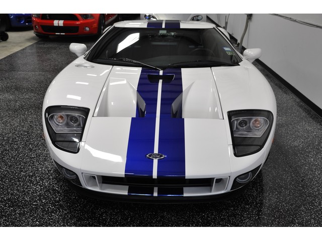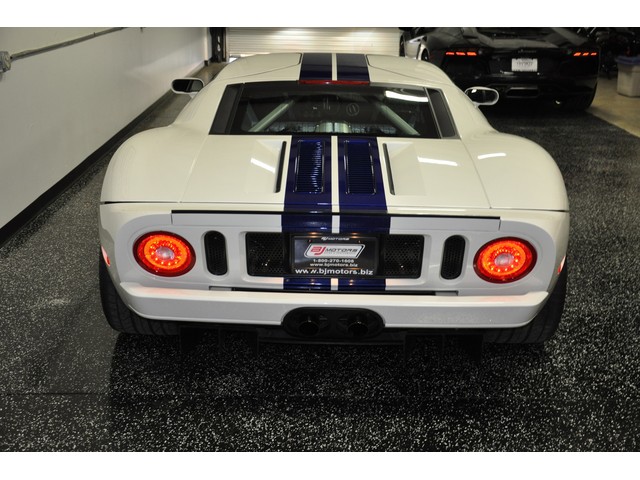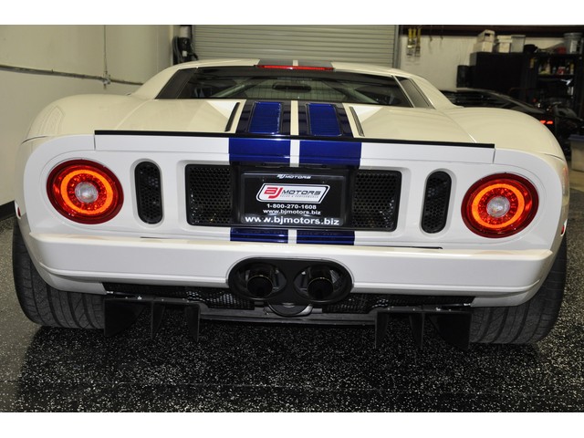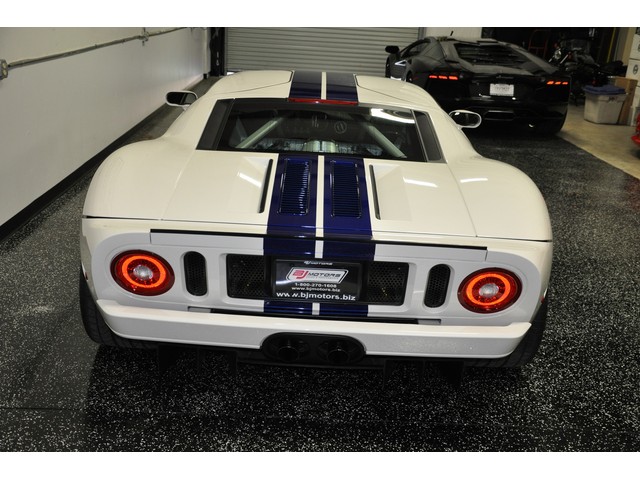 White with Blue Stripes - This Ford GT was built in US at Wixom and sold in Canada. This White GT comes with everything original. This GT was one of 277 units built for Canada. The unique car had to meet the government regulations and standards and was built with a different material foam for impact in the front bumper and the rear bumper had extensions added from the factory.  Red calipers, Accufab Throttle Bodies and Snout, BBS Upgraded Wheels. The paint and interior are in excellent condition.