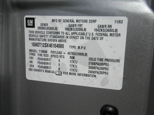 • VIN: 1GKET12SX46164980