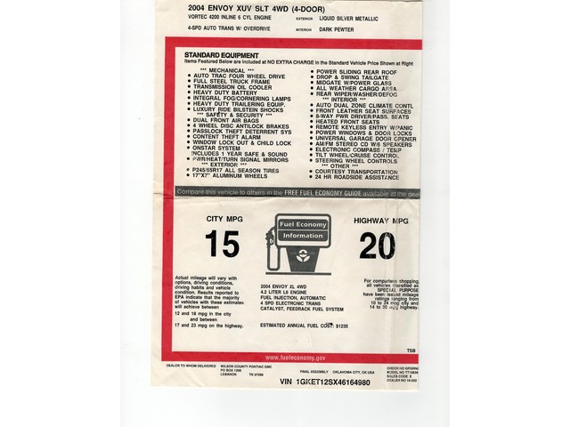 2004 GMC ENVOY XUV SLT 4WD 97K 1 OWNER RUST FREE $41,095 MSRP CALL 855.507.8520