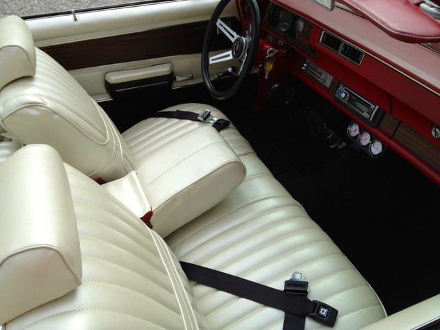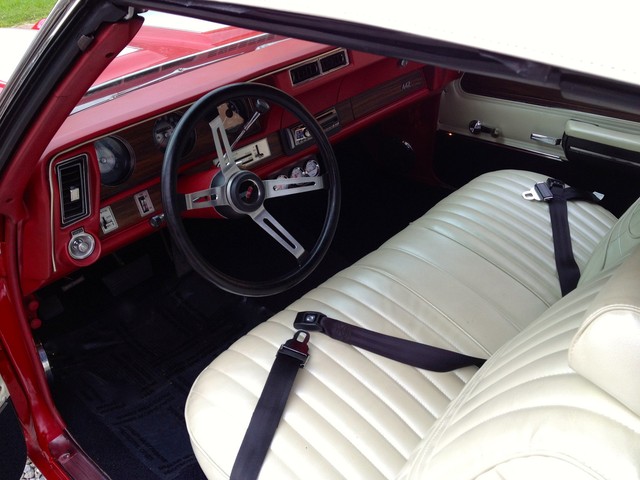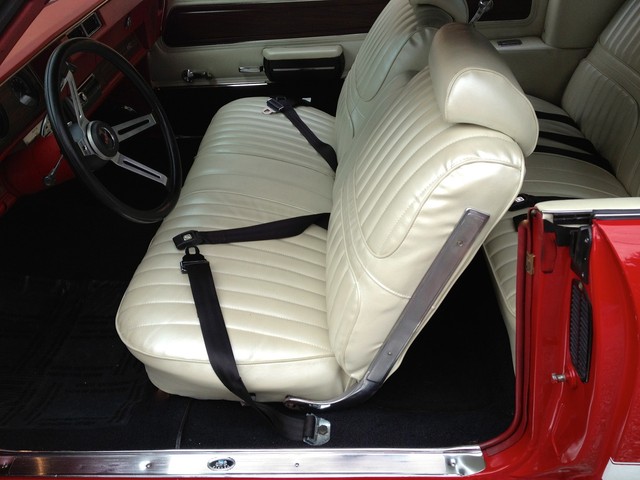 This 442 is equipped with a beautiful white interior that is in very nice condition with new vinyl seats, door panels, and carpet.  The restoration also included new brakes, new exhaust system, and rear air shocks.