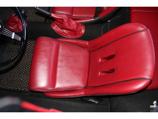 Leather door panels with twist clasp storage pockets are in exceptional condition, as are the real leather bucket seats with matching shift and E-Brake boots. The optional real leather looks FANTASTIC, and is rip, tear, stain, and seam pull free. It has no stains and only the gorgeous patina fine grade leather gets over the years.