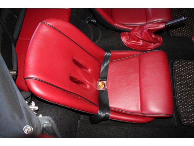 Seat belts are fully functional lap units, and have the PORSCHE crest on the buckle clasps.