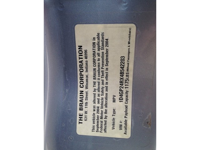 VERY NICE 2004 DODGE BRAUN ENTERVAN  WITH POWER RAMP ALL CONTROLLED BY REMOTE CONTROL, THIS VEHICHLE HAS BEEN SERVICED 100% MECHANICALLY.  IT IS FULLY LOADED AND VERY WELL EQUIPPED. OUR 100% RATING TELLS IT ALL.