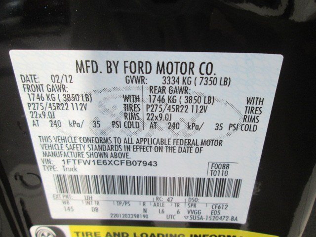 VIN: 1FTFW1E6XCFB07943 Stock Number: CFB07943 Mileage: 31356