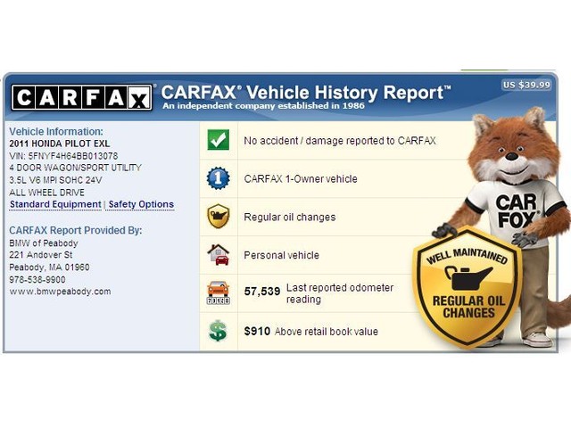 You are bidding on a one owner 2011 Honda Pilot EX-L with 57,601 miles that has a clean Carfax report.  This Honda is loaded from the factory with options such as leather, AWD, 7 passenger, rear DVD player, heated seats, moonroof, back up camera, and the list goes on!  Other than a light scuff on the rear bumper this vehicle is very clean and looking for its second owner to enjoy.  This vehicle has NEW front brakes, pads and rotors!  Please call or email today if you would like to end the auction early, this vehicle is ready to pass state inspection.