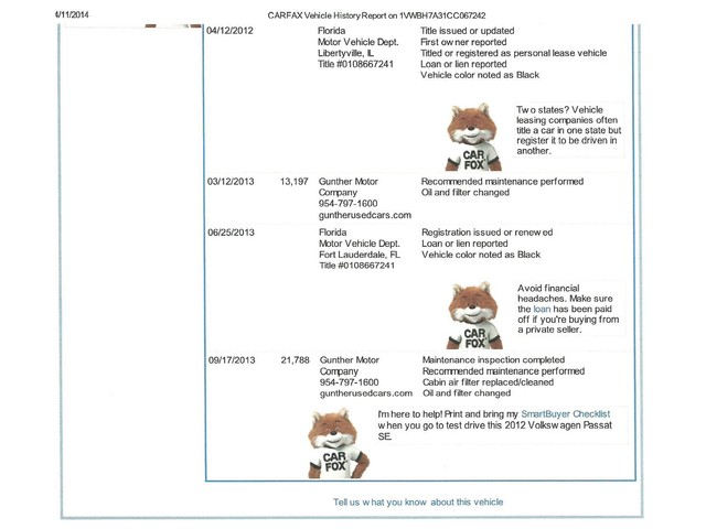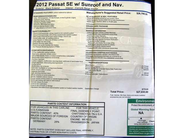 2012 PASSAT SE NAVIGATION CARFAX CERTIFIED ONE FLORIDA OWNER WARRANTY LIKE NEW