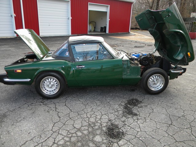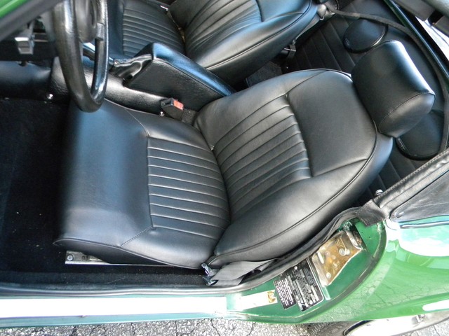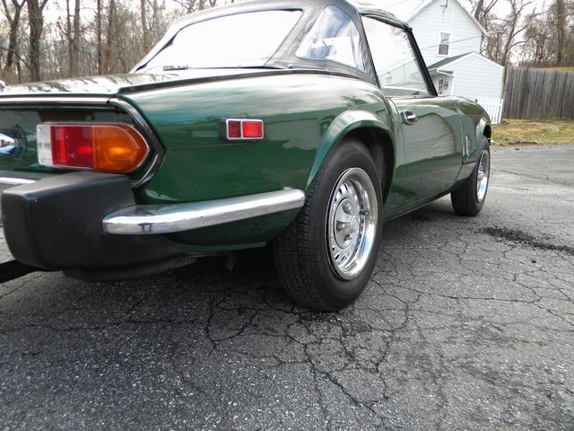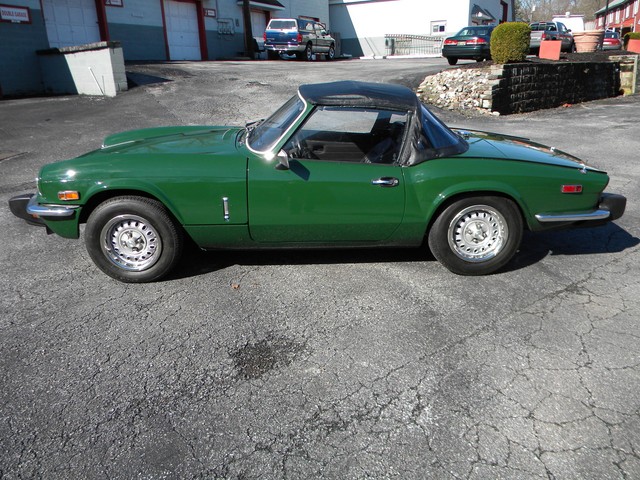 Here is an extremely nicely restored 1977 Spitfire 1500 in British Racing Green. It is very rare to see these cars in this condition. This 45k mile, 2 owner car was owned by the original lady up until 2012. Always garage kept, it has all of its original metal, Zero Bondo.  Recently repainted its original color, and treated to a brand new leather interior and new convertible top. It also has the rare factory steel hardtop, painted along with the car. New brakes, and recently passed the rigorous DelawareState safety inspection. Everything works and it is all ready to enjoy for springtime motoring. Our price is half the cost to buy and restore a Spitfire to this level. Buy one that is all done!