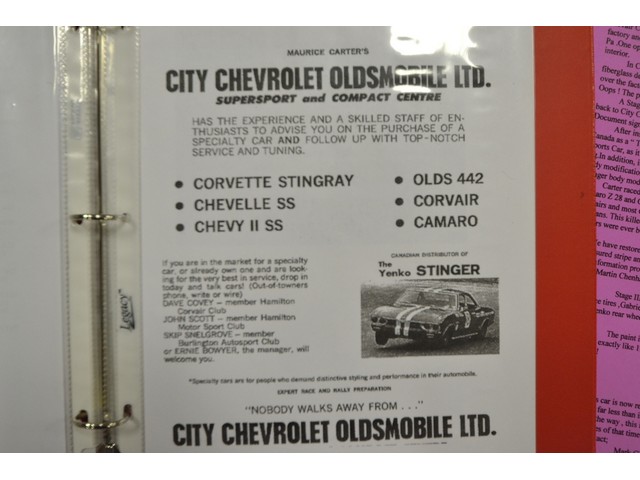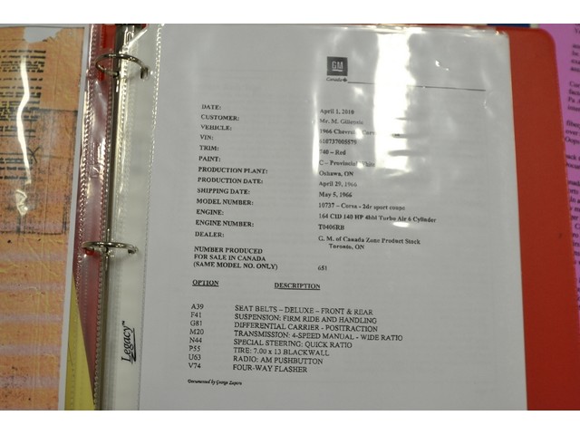 Documentation Includes GM Canada Build Sheet, 2 page Export Document signed by Don Yenko. Original conversion cost to a Stage I invoice of $622.00 along with correspondence between Don Yenko and the Canadian dealer. (Car is now setup as a Stage III)Could be made street legal by adding the wiring harness, mufflers and a few other minor adjustments.