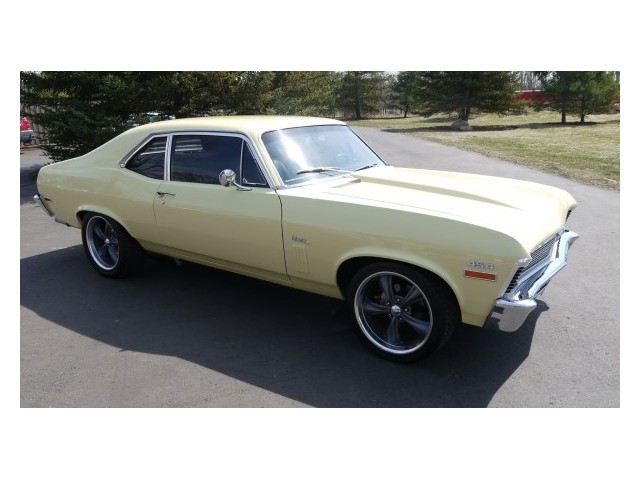 Stunning 1970 Chevrolet Nova big block Resto Mod that has undergone a complete bottom to top restoration. The Butternut Yellow paint is excellent, costing $7100.00 alone, and is on an excellent body. The new black vinyl interior with bucket seats is also in excellent condition. This car comes with a complete file of all receipts and specifications of all modifications, plus the original paperwork when it was purchased new in Louisville, KY, including the protect-o-plate. The pro built 454 engine produces 450 h.p. and 490 ft lbs of torque and has forged pistons, World Product heads, Lunati hydraulic cam, HEI Distributor, Harland Sharp rocker arms, Edelbrock manifold, double pumper Holly carburetor, and much more. Additional features include air conditioning, 5 speed Kiesler transmission, Hurst shifter, McLeod clutch, competition engineering frame connectors and traction bars, Lakewood bell housing, 9" Ford rear end with limited slip 3.70 gears, power Wildwood front disc brakes, power steering, autometer carbon fiber gauges, hyperdrive v-belt drive system, and custom Boss 18" wheels. This is an excellent driving car, very fast but has good street manners. It is road ready!