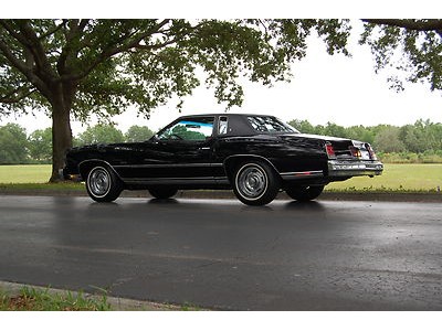 Everything works on this car and it runs, drives, and performs like new.  It appears to be all original paint, and it still shines nice.  There are some dings here and there, two quarter sized in the hood.  A few along the body as well but they are nearly impossible to photograph. There is a little paint blemish on the corner of the passenger door towards the top.  The body molding on the drivers side is missing the rubber o the door and the small portion of the quarter, this is very common with this era Monte.   The vinyl top is in excellent condition.  All the glass is original and nice.  The undercarriage is in rust free condition as you can see in the photos.  Bottoms of the doors are clean and original.  The weather striping is still soft and all original.