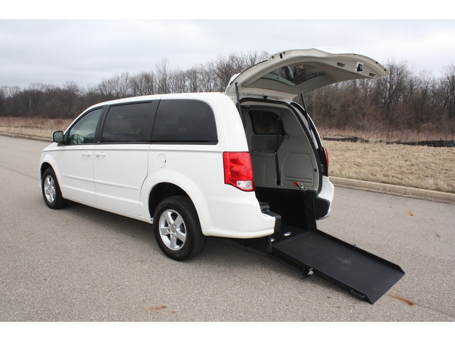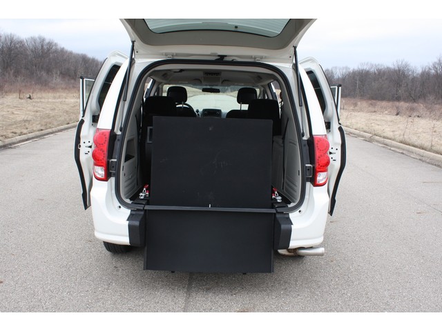 This is a 2013 Grand Caravan With a Rear Entry Wheelchair Conversion With a Zero Maintenance Extra Wide 34” Manual Wheelchair Ramp.
