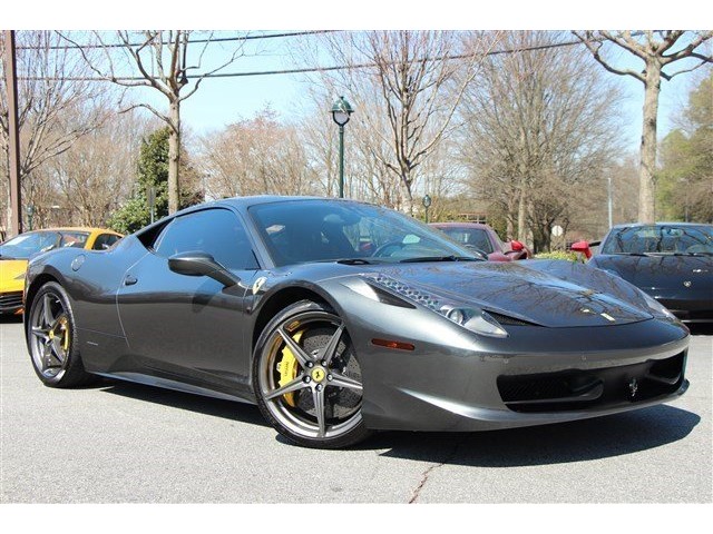 HERE IT IS!!  MOTORCARS OF GEORGIA IS PROUD TO PRESENT AN IMMACULATE 2013 FERRARI 458 ITALIA COLORED IN SILVERSTONE OVER BLACK LEATHER/ ALCANTARA INTERIOR.  WE SOLD THIS CAR IN DECEMBER AS A 1-OWNER CAR TO A LOCAL CLIENT WHO RECENTLY SOLD THE CAR BACK TO US AFTER ABOUT 800 MILES OF USE.  FRONT TO BACK, TOP TO BOTTOM THIS ONE IS LIKE NEW.  THE WHEELS HAVE BEEN PAINTED TO MATCH THE SILVERSTONE EXTERIOR AND THE YELLOW BRAKE CALIPERS REALLY POP.  THERE ISNT ANOTHER 458 LIKE THIS ONE ANYWHERE.  LOOK CLOSELY AT THE PICTURE, CAR HAS A TON OF OPTIONS AND CURB APPEAL OUT OF THIS WORLD.
