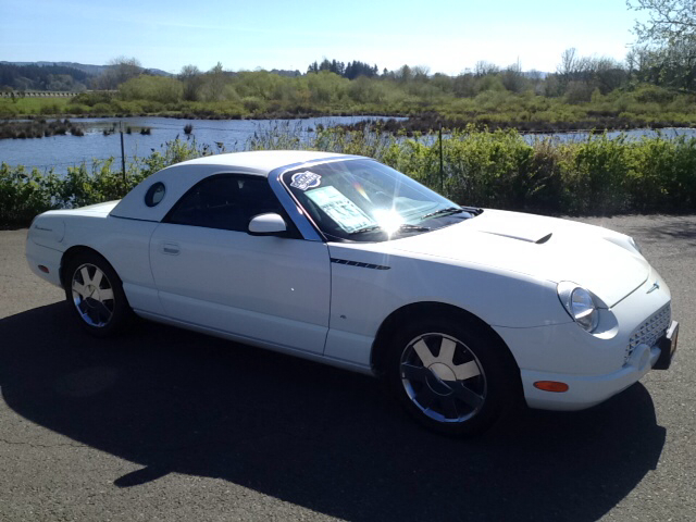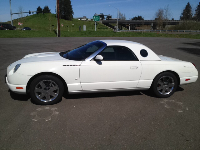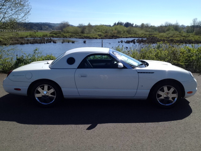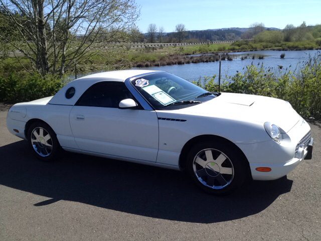 Up for auction is a "One Owner" 2003 Ford Thunderbird Convertible with the removeable hard top, hard top stand and convertible boot. This car was driven an average of only 4,680 miles per year. I've seen a few of these over the years and it always seems like the hard top stand is missing, fortunately this one is not. It's a rear wheel drive car powered by a 3.9 liter V-8 and a 5 speed automatic transmission. This Thunderbird runs and drives like new. The Thunderbird has a ton of options, power windows, power door locks, dual power seats, dual power mirrors, cruise control, electronic tilt and telecopic steering, 6 disc AM/FM CD player, been wired for Sirius Sattelite radio, heated leather seats, dual climate control, steering wheel controls for radio and cruise, auto headlights, anti lock 4 wheel disc brakes, traction control, power top, remote trunk release, remote power door locks, factory chrome alloy wheels, factory hood scoop, dual exhaust with chrome tips, all weather floor mats and a set of Toyo Proxes 4 235/50ZR17" tires. I went over this car and could not find a single scratch in it. The body is in perfect shape and the interior shows hardly any wear at all. The paint is in fantastic shape. I took this car out for a 15 mile drive and was very impressed with the ride, handling, braking and acceleration. No smoke and mirrors here, It's the nicest Thunderbird I have ever seen come in trade. This car is in showroom condition. We do not have any service records on this car but from the looks of the Carfax on this Thunderbird all the work was done like clock work at a local Ford dealership. The front brake pads were replaced and rotors were turned at 51,327 miles. The car has gone through our shop and all checked out well. It also went through a 90 point safety inspection. This is an absolutely gorgeous car. This car has resided within the Willamette Valley all of it's life so there are no rust issues whatsoever, we do not use salt on our roads and the ocean beaches are nearly 70 miles from us. If you are looking for a very nice Thunderbird that is turn key look no further! Buyer is responsible for all shipping arrangements and cost associated with it. Buyer is also responsible for taxes and DMV fees that pertain to his or her state of residence. There will be a $75 documentation fee added to the final price. We reserve the right to end the auction early because this Thunderbird is offered locally as well. Call, Click, or Drive Today! Don't forget that we have a great selection of new and pre owned cars and trucks of all makes and models. 'Pick up the phone and call us today' 'We do Free Carfax Reports for every vehicle!' 'We offer a full range of automotive services from sales to service and accessories. With only one previous owner, this automobile is ready for you.This is a smoke-free automobile.There is no damage evident on this vehicle.This is a garage kept vehicle.The engine on this vehicle is running properly.This vehicle has no known defects.The mileage represented on this vehicle is accurate.There are no signs of prior damage on this vehicle.There are no noticeable dings on the exterior of this vehicle.This vehicle has a smooth shifting transmission.All power equipment is functioning properly.The exterior of this vehicle is extra clean.Extra clean interior. Absolutely no rips, odors or abuse.There is approximately 75% of the tire tread remaining. For more information please contact "Rob Lucas" 503-769-7691.