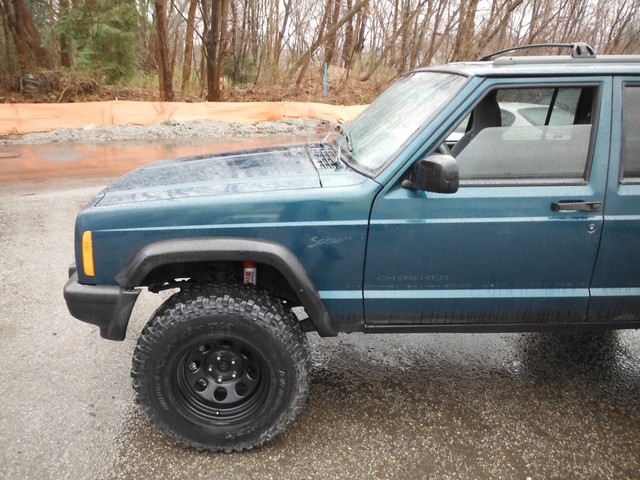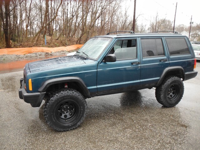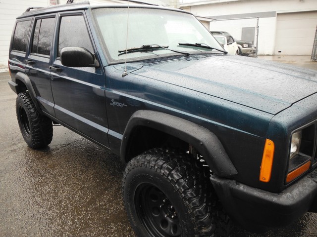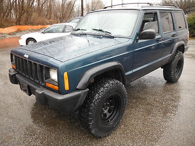 A GOOD LOOKING GREAT RUNNING LIFTED JEEP CHEROKEE SPORT 4X4 WITH A 4 LITER 6 CYLINDER ENGINE & 4 DOORS .