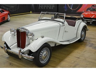 - Previous owner completed full frame on restoration - Ivory exterior with Red interior and red painted radiator slats - Has MG hubcaps rosewood dash and rosewood steering wheel - Full black tonneau cover and has a black convertible top both in good condition - Engine was rebuilt during restoration This 1952 MG TD has had a complete restoration. Its presented in Ivory with red interior. The 1250cc engine produce 58hp@ 5500 rpm and the compression ratio was 8.6 to 1 when it was new. It has two SU carburetors and a cast iron head and block that is backed by a 4 speed manual transmission. other options include steel wheels black soft top and rear mounted spare tire. The MG runs well with no issues at this time. Please contact Kennith Stewart at 1-877-689-6930 for more information.