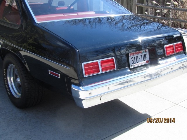 This is a pristine 1978 Nova with only 7K actual miles.  The black body and red interior are original with a condition that you would expect from a low mileage car.  The real surprise is under the hood.  This Nova has been treated to a thorough complement of performance modifications starting with a stout 355 CI small block Chevy V-8 connected to a Richmond Super T-10 4-Speed transmission which sends power to a 3.42 posi rear.  The Hooker Headers mated to a 3” dual exhaust sounds awesome.  A full list of the drive train specs are available upon request.