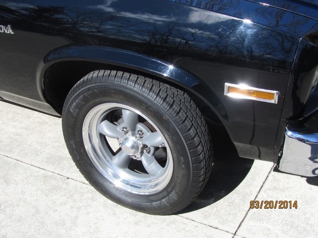 This Nova has power steering and Auto Meter Tach, Oil and Temp gauges.  It has tinted glass and rides on BF Goodrich tires with American Racing wheels.