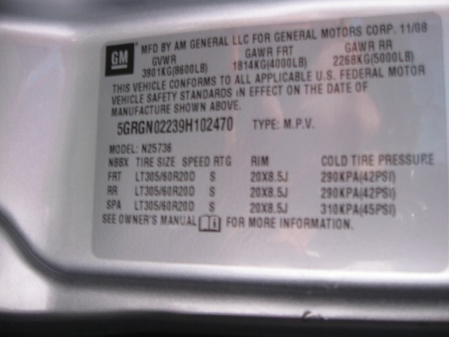 VIN: 5GRGN02239H102470Model: RN25736-2009 HUMMER H2 SUT 4WD