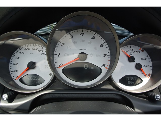 3.4L DOHC SMFI horizontally-opposed 24-valve 6-cyl engine, 16.9 gallon fuel tank, 3-point seat belts w/pretensioners & load limiters, 4-wheel anti-lock braking system (ABS), 6-speed manual transmission, Alarm system, Aluminum-look interior trim, AM/FM stereo w/CD player, (7) speakers, 185-watts, Anti-theft system (inc: engine immobilizing, transponder key, interior sensor, remote control), Center storage compartment, Central locking system, Climate control w/carbon filter, Dash-mounted pop-out cupholders, Door trim mounted head curtain airbags, Double inertia flywheel, Dual illuminated visor vanity mirrors, Front/rear fog lamps, Front/rear stabilizer bars, Heated pwr mirrors, HomeLink universal transmitter, Independent 4-wheel MacPherson strut suspension, Leather-wrapped 3-spoke steering wheel,leather-wrapped shift knob, Porsche stability management (PSM), Pwr 4-wheel vented disc brakes with RED front and rear calipers....