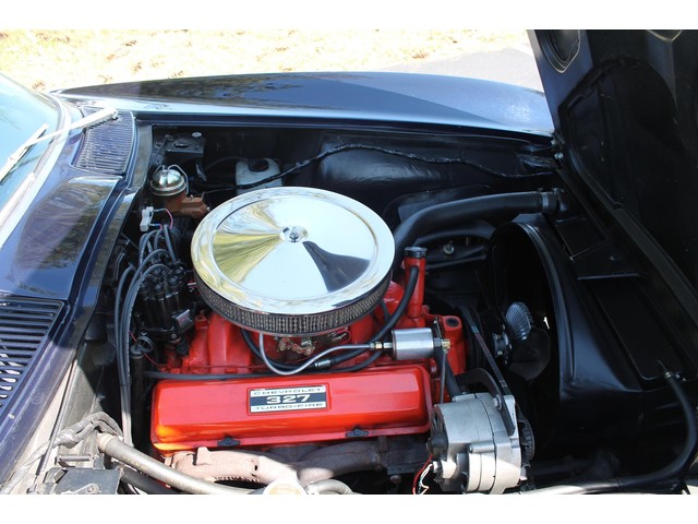 When the car was restored the original 327/300 hp V8 (engine stamp #4112426 & F0224SD) was rebuilt as was the transmission, the interior was removed and replacedwith all new components that included the dash, door panels, seats, top, carpets and cneter console.  The side pipes were added at this time and make the car look and sound great!  The original radio has an added hidden Kenwood receiver CD player with remote.