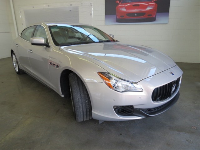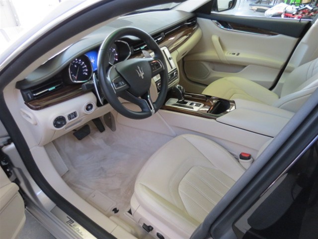 Under 10k miles, full Factory Remaining Warranty and the 4 Year Service Package from Maserati, This Local trade is a 2014 Maserati Quattroporte, 3.8 Liter Twin Turbo V8 Engine w/ 523hp with 524Lb of Ft Torque & 8 Speed Automatic Transmission with Skyhook Controlled Suspension. Equipment Consist of a Keyless Entry with Remote Start Dual Stage Airbag System Power Sunroof Featured with Adaptive Bi-Xenon Headlights All Leather Tan Seats Steering Wheel and Front to Rear Parking Sensors Also Auto Dimming Heating and Folding Side Mirrors. Its has it Upgraded 8.4 Maserati Touch Control & Navigation Screen with an Upgraded Premium Sound System. Power Rear Side Sunshades. ORIGINAL MSRP OVER $150K