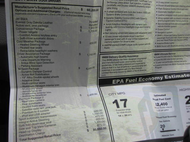 RARE 550I M SPORT MSRP $81K. 1 OWNER CLEAN CARFAX AND AUTOCHECK CERTIFIED. BMW FACTORY WARRANTY ADDED FREE MAINTENANCE AND ROADSIDE ASSISTANCE AND FREE MAINTENANCE 4Y/50K MILES OR 12-01-2015. JET BLACK EXTERIOR WITH EVEREST GRAY DAKOTA LEATHER INTERIOR.  LOADED WITH M SPORT PACKAGE, NAVIGATION, COMFORT ACCESS, HEAD UP DISPLAY, SHADES, CAMERA, SOFT CLOSE,  HEATED FRONT AN REAR SEATS, HEATED STEERING, FRONT ACTIVE SEAT VENTILATION, XENONS, PDC, TPM, AND MUCH MORE…