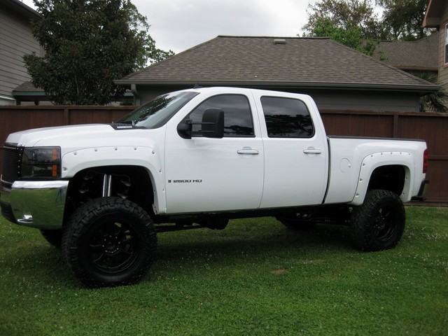 You are looking at a custom Show Truck 2007 Chevrolet Silverado HD 2500 ( LTZ ), 4x4 diesel truck with the Duramax diesel engine and Allison 6 speed automatic transmission. Its crew cab with a short bed. It comes with the LTZ package ( Navigation, leather seats, heated seats, dual climate control, chrome package, XM, on star and much more ). Also this truck comes with many extras: This truck was made for shows and it comes with an 6 inch suspension lift kit. The suspension comes with dual Fox shocks for the front (dirt logic) and dual shocks for each side on the back, Fox shocks also ( Just $3,000.00 in shocks!!!! ). Also it has chip, power AMP steps, built in radar, 20 inch rims, 37 inch tires that have 80% tread left on them, RBP grill, exhaust system and much more! This Truck has over $20,000.00 in extras alone!!! This truck is fully loaded with all options that you could get from manufacture. I have tried to present this truck to the best of my abilities, and with plenty of pictures. PLEASE CONTACT US AT TEXASAUTOGROUP@GMAIL.COM OR 713-319-8844.