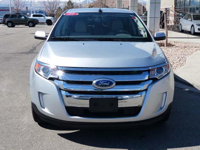 AWD. What a terrific deal! A great deal in Sandy! Come take a look at the deal we have on this beautiful 2013 Ford Edge. It is nicely equipped with features such as AWD, 12 Speakers, 3.16 Axle Ratio, 4-Wheel Disc Brakes, ABS brakes, Air Conditioning, Alloy wheels, Auto-dimming Rear-View mirror, Automatic temperature control, Brake assist, Bumpers: body-color, CD player, Delay-off headlights, Driver door bin, Driver vanity mirror, Dual front impact airbags, Dual front side impact airbags, Electronic Stability Control, Four wheel independent suspension, Front anti-roll bar, Front Bucket Seats, Front Center Armrest w/Storage, Front dual zone A/C, Front reading lights, Fully automatic headlights, Garage door transmitter: HomeLink, Heated door mirrors, Heated front seats, Illuminated entry, Leather-Trimmed Heated Bucket Seats, Low tire pressure warning, Memory seat, MP3 decoder, Occupant sensing airbag, Outside temperature display, Overhead airbag, Overhead console, Panic alarm, Passenger door bin, Passenger vanity mirror, Power door mirrors, Power driver seat, Power passenger seat, Power steering, Power windows, Radio data system, Radio: Sony AM/FM Stereo w/HD Radio/MyFord Touch, Rear anti-roll bar, Rear reading lights, Rear seat center armrest, Rear window defroster, Rear window wiper, Remote keyless entry, Speed control, Speed-Sensitive Wipers, Split folding rear seat, Spoiler, Steering wheel mounted A/C controls, Steering wheel mounted audio controls, Tachometer, Telescoping steering wheel, Tilt steering wheel, Traction control, Trip computer, and Variably intermittent wipers. With plenty of passenger room, you won't have to worry about being cramped when it's more than just you in the SUV.