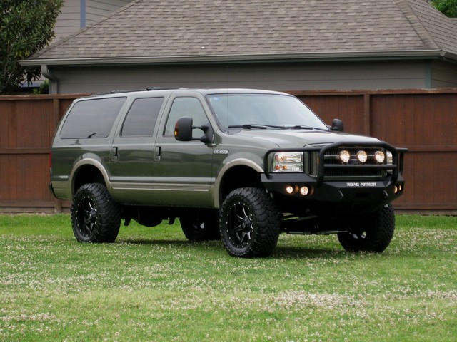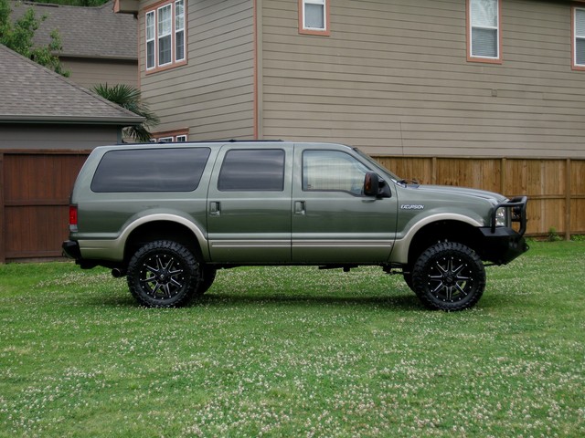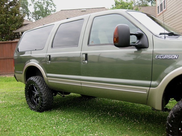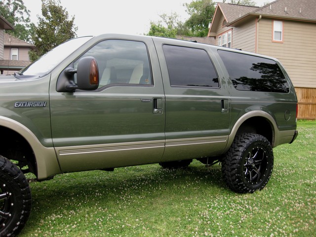 Up for sale is one of the cleanest lowest miles carfax certified 2005 Ford Excursion Eddie Bauer 4x4 with a 6.0 Power stroke turbo diesel engine and an automatic transmission with only 36K on it. This Excursion starts great, runs awesome and has a lot of power. The power stroke motor sounds great and runs solid. The transmission shifts great and also feels solid, like a new one. This truck looks really good; it’s been taken good care mechanically and cosmetically. This Ford comes with the Eddie Bauer trim that comes with 2 tone leather seats, power seat, memory seat, HEATED SEATS, dual A/C, Dual climate controllers, 3rd row seat, nerf bar, back up sensors, 2 tone paint, TV/DVD and much more. The exterior is in excellent shape like a new truck. The interior is also in excellent shape. Also this truck comes with $15,000 in upgrades alone. This SUV comes with a 6 inch suspension lift kit, 20 inch Fuel rims and brand new 35 inch Toyo Open Country M/T tires, Road Armor bumpers, exhaust system, power amp steps and much more. We just got this SUV fully serviced, oil change, changed the fuel filters, changed windshield wipers, changed both batteries and did alignment. I have tried to present this SUV to best of my abilities and with plenty of pictures. You won’t find another Excursion like this. This SUV looks like a brand new one!  If you have any other questions PLEASE FEEL FREE TO CONTACT US AT TEXASAUTOGROUP@GMAIL.COM OR 713-319-8844.