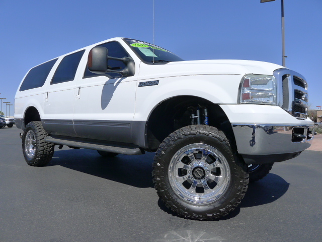 2005 FORD EXCURSION DIESEL 4X4 LIFTED SUV FOR SALE. FEATURING A PROFESSIONALLY INSTALED OFF ROAD SUSPENSION LIFT, 35 INCH FEDERAL M/T TIRES ON 20 INCH WELD RACING CHROME OFF ROAD WHEELS, DUAL FOX SHOX WITH RESERVOIRS, POWERSTROKE TURBO DIESEL V8 MOTOR WITH A BANKS HIGH FLOW AIR INTAKE, BANKS HIGH FLOW EXHAUST, 86K MILES, GRAY LEATHER INTERIOR, DVD WITH FOLD DOWN TV SCREEN, IN SEAT SCREENS, 6 DISC CD STEREO, POWER SEATS, POWER PEDALS, 3RD ROW SEAT, REAR A/C, TOW PKG., RUNNING BOARDS, TINT, EXTREMELY CLEAN, READY FOR ADVENTURE!