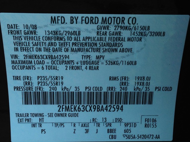 • VIN: 2FMEK63CX9BA42594