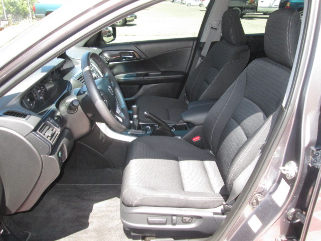 2013 Honda...... Accord...... Sport ......Manual....... Sedan......Modern Steel Metallic.....Black........Avoid buyer's remorse - a CarFax Title History report is included! It has had only one previous owner, is accident free and comes with a CarFax Buy Back Guarantee. Don't sacrifice on quality. Drive away in this 2013 Accord today. Start saving cash at the pump - this car is rated at 29+ MPG combined. Why over pay? This is one of the best values around. The rear camera makes backing up a breeze. A security system will deter potential thieves from stealing this vehicle. This Accord includes: dual exhaust tips, extremely convenient cruise control, low tire pressure warning and airbags.