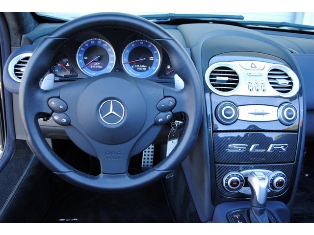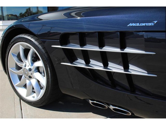 Autosport of New England is pleased to count this McLaren SLR Roadster amoung it's exclusive inventory. We have only a few examples of supercars such as this Roadster from which to choose. This SLR convertible is finished in a dark blue metallic over a dark blue leather interior. Condition in and out is basically new. The staggering performance of the SLR is achieved from its 617hp engine, Active aerodynamics and sensotronic brakes. The convertible top completes its open or close cycle in about 10 seconds. This SLR has travelled only 3474 miles and shows no real wear. Call Autosport of New England about this beautiful McLaren SLR Roadster.The mileage represented on this vehicle is accurate.There are no signs of prior damage on this vehicle.There are no noticeable dings on the exterior of this vehicle.This vehicle has a smooth shifting transmission.All power equipment is functioning properly.This is a smoke-free automobile.There is no damage evident on this vehicle.This is a garage kept vehicle.The engine on this vehicle is running properly.This vehicle has no known defects.The exterior of this vehicle is extra clean.Extra clean interior. Absolutely no rips, odors or abuse.The tires on this vehicle appear to have no wear at all.