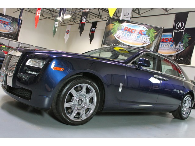 Beautiful MINT condition, One Owner, 2012 Rolls Royce Ghost Extended Wheelbase! ONLY 3k miles, this gem was pampered and garaged throughout its short life! Stunning Midnight Sapphire w/ Seashell Leather is the perfect color combo! All books and original window sticker provided! 4 year/unlimited mile warranty has you covered--2 more years left! This Rolls is a Clean Carfax, Non-Smoker car that drives and looks LIKE-NEW! $349,000 sticker price with every option! SAVE BIG! Options include: 6.6L V12, front massage seats, 20 chrome wheels, lane departure warning, active cruise control, rear theatre configuration, six-DVD changer, night vision, lambswool floormats, extended leather, panorama sunroof, camera system, etc! $1,800 Seashell & Black Contrast Interior add-on! No stories with this car, she stands LIKE-NEW! Very desirable Extended Wheelbase with these miles is a winner! Request a 'PMC live' session for a private web viewing of the car! Pacific Motorcars is freeway close at the 91 and 110 freeways!! Se Habla Espanol!! Pacific Motorcars confidently compliments this vehicle with a 30 day/1000 mile FREE Limited Warranty! *Price is based off of cash price, financing available* For more information and additional photos, visit pacificmotorcars.com 310-515-1120 -- INSTALLED FEATURES: Adjustable rear headrests, Front headrests: adjustable, Number of front headrests: 2, Number of rear headrests: 2, Stability control, Traction control, Child seat anchors: