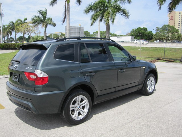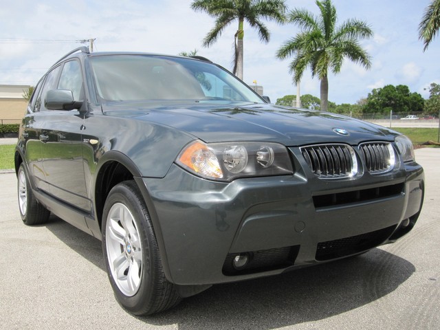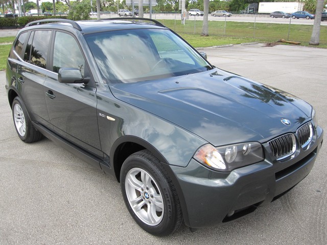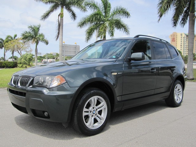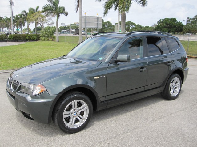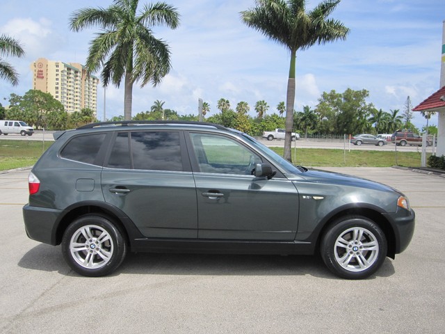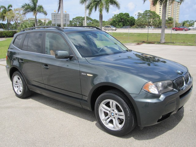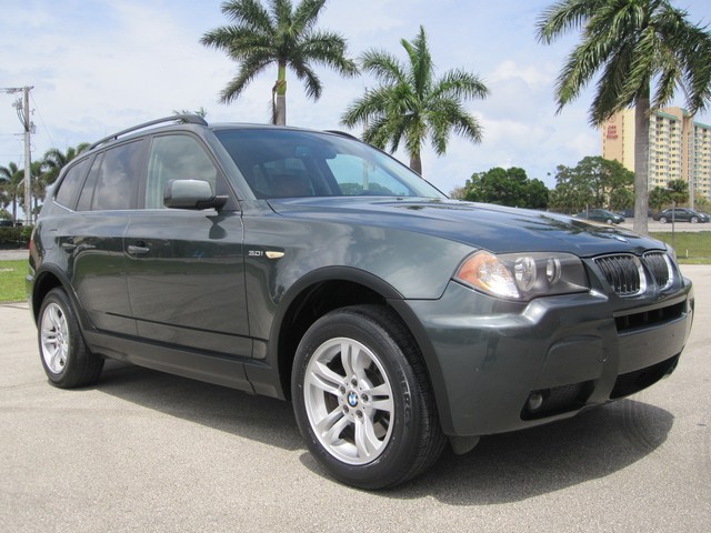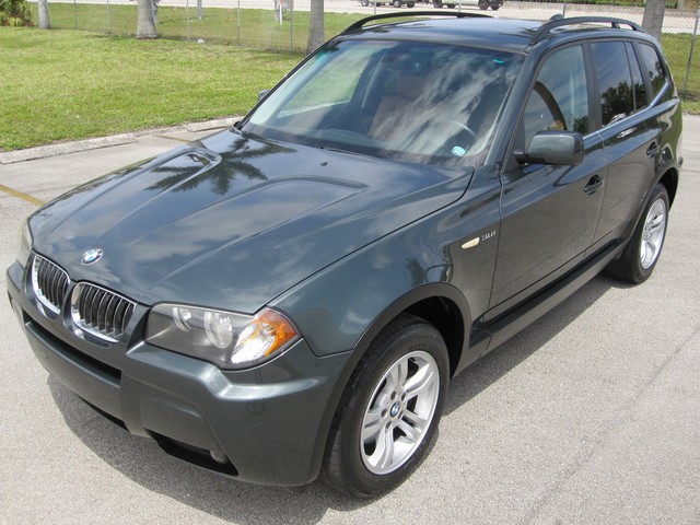 2006 BMW X3 3.0I AWD ALL WHEEL DRIVE SUV WITH SUPER LOW 97K FLORIDA MILES, 3.0L 6 CYL ENGINE, AUTOMATIC TRANSMISSION,  PREMIUM PACKAGE, ICE COLD AIR CONDITIONING, LEATHER INTERIOR, BLUETOOTH, POWER GLASS SUNROOF, NICE 17 INCH ALLOY WHEELS, IN DASH CD DISC PLAYER AND MORE. Up for auction a gorgeous looking in Highland Green metallic exterior color and super attractive Terracotta Montana Leather Interior BMW X3 3.0i AWD that has truly been well kept and maintained. The mileage represented is the actual mileage of this vehicle. Clean smell throughout, appears to have never been smoked in. This vehicle has all of its original body parts, original paint and appears to have never been in an accident. It has a CLEAN AUTOCHECK vehicle history report. Other then a few minor paint chips (professionaly touched up) the exterior is flawless. We looked all over and found no door dings, obviously this vehicle is one of those vehicles you always see parked deep in the parking lots. To look this good, it is obvious that this beauty has been garaged. This vehicle's transmission shifts out nice and smooth from gear to gear. The engine is mechanically sound and can be driven anywhere with confidence. The elctrical and optional equipment on this vehicle has been checked to insure that it is all in working condition. The beautiful Terracotta Montana leather interior is clean and polished looking. The tires are in a good shape,  please, see the pictures. Plan a trip or vacation to Florida and we will pick you up at the Ft Lauderdale airport only 15 minutes away.  Our staff is ready to answer all of your questions, please call us at 561-317-1916 or email us m880@bellsouth.net. For more information on this vehicle go to FloridaCarsToGo.net. Thank you for reading and Good Luck!
