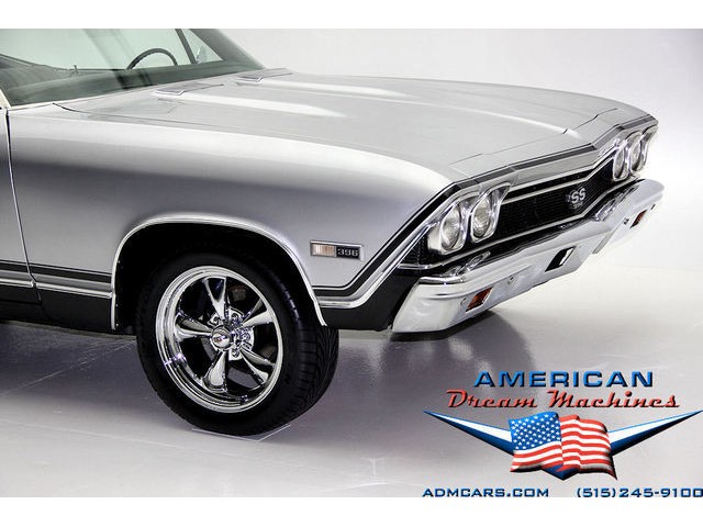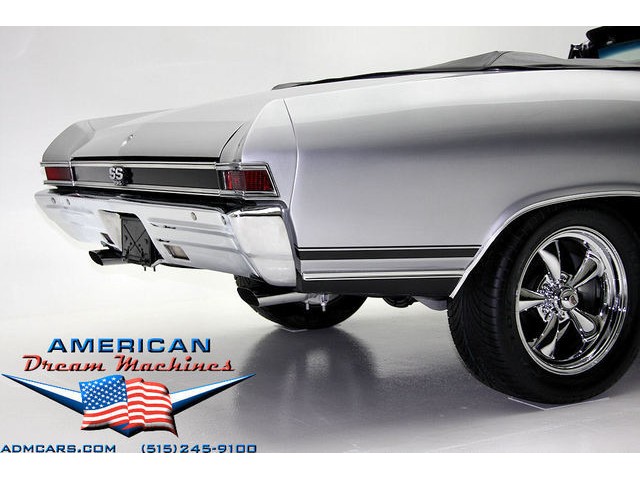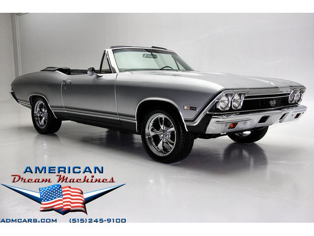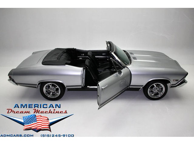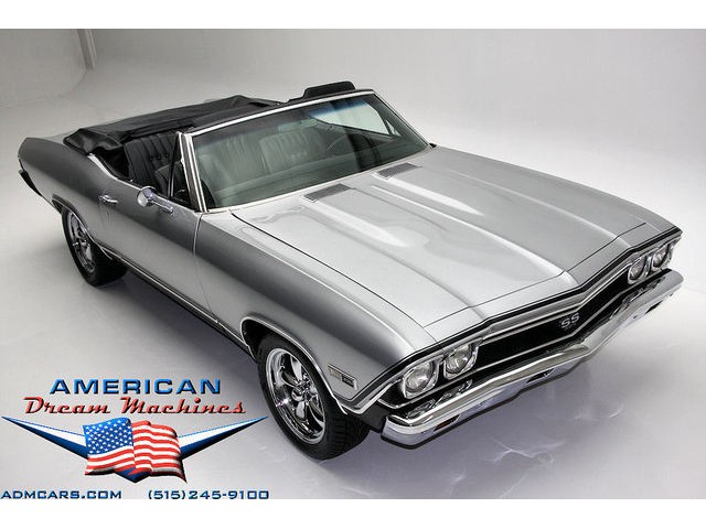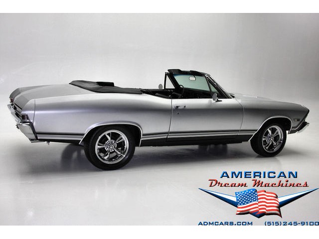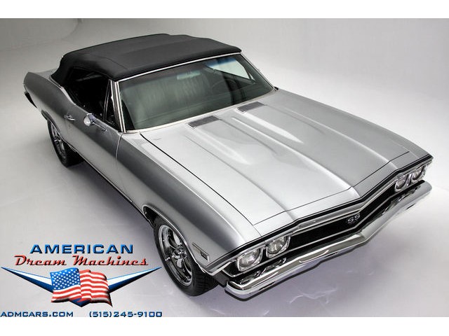 NEW LISTING!!! AWESOME 1968 CHEVELLE CONVERTIBLE WITH SUPER SPORT OPTIONS, SS TRIM PACKAGE AND STRIPING, 396 CUBIC INCH BIG BLOCK, RARE RIBBON TACHOMETER, LOADED WITH POWER STEERING, POWER DISC BRAKES AND A NEWER BLACK POWER TOP. VERY NICE METAL BODY WITH GREAT FIT AND FINISH, THE FLOOR AND FRAME ARE SOLID INTACT AND VERY NICE. HAS NICE BLACK INTERIOR THAT SHOWS VERY WELL. THIS STUNNING SILVER CHEVELLE IS ROLLING ON A BRAND NEW SET OF REV CHROME RIMS AND MICHELIN/RIKEN RAPTOR TIRES. THESE WHEELS CAN BE EXCHANGED FOR STOCK WHEELS TO SAVE SOME $$$ Vin#136678K212266 (((PLEASE CALL FOR DETAILS))) American Dream Machines is located in the center of the Heartland in Des Moines Iowa. We are one of the largest full service classic car dealerships in the Midwest. We specialize in American Muscle cars with integrity. We usually have at around 100 cars in stock. Please call (515)-245-9100 and we will be happy to tell you about our cars. We are Des Moines largest classic car dealership, ''Specalizing in American muscle cars with Integrity.''