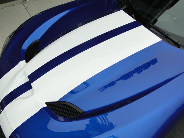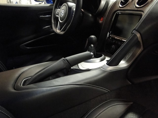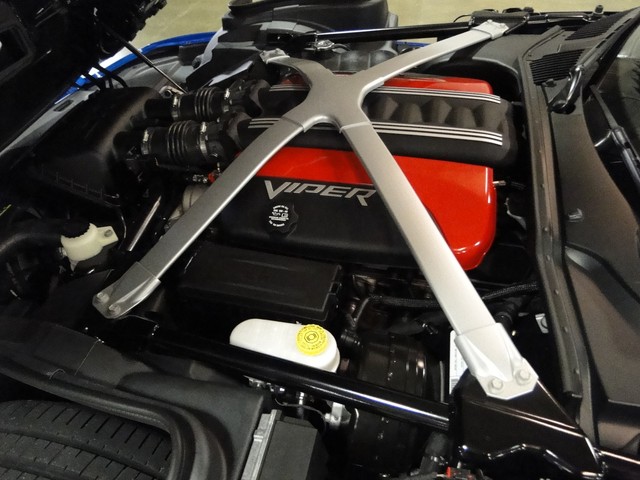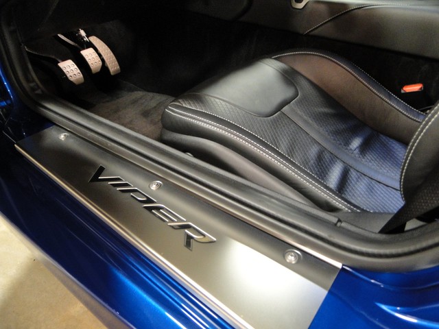 This Viper comes in Viper GTS Blue with Bright White Stripes over Black Leather Interior accented with White Stitching. This car come standard with: