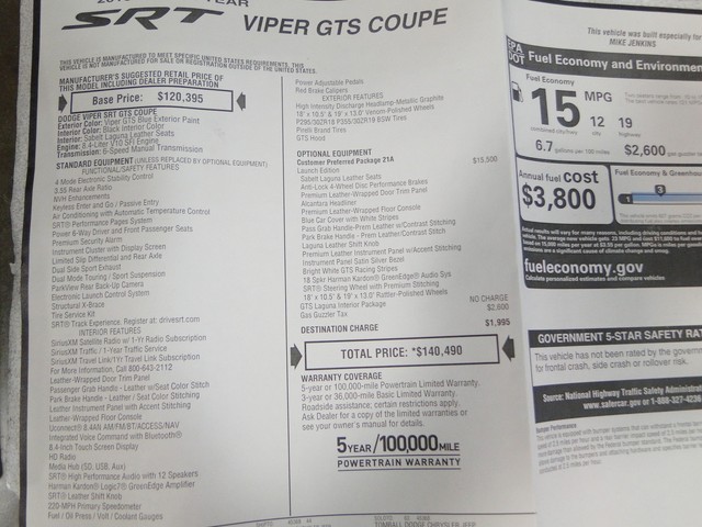 SRT VIPER GTS COUPE Launch Edition LOW MILES V10 Laguna Leather Seats NAVIGATION