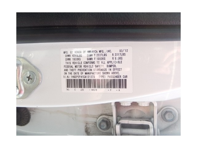• VIN: 1HGCP2F41CA121375
