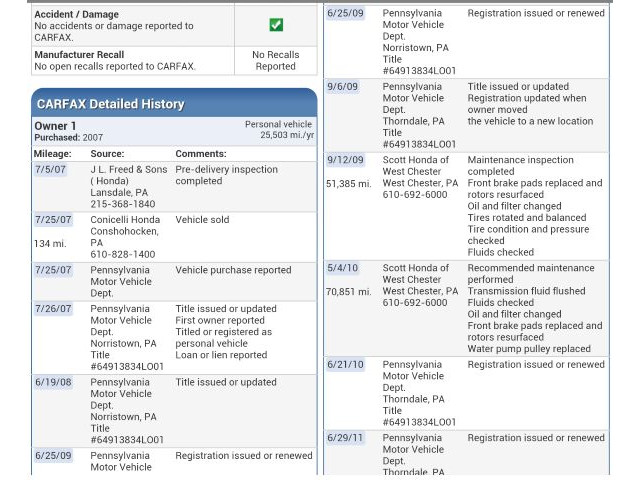 We often use these services to check a vehicles background.  Carfax and Autocheck are wonderful services,  but they have their limitations.  Many times they will show more “owners” than we may state a vehicle has had.  This is because they are an information service only.  They have never seen the car, owned the car,  and have no other information about the car than what is reported from different agencies.  All of this information is originally hand entered into their databases at their source and mistakes and inconsistencies will occur !  For example when a dealer such as ourselves purchases a vehicle they may pick it up as a new owner when this is of course not the case as dealers are not end users.  Also they often contain mileage errors and inconsistencies that appear to make little sense.  Just like any computer generated information report you need to know how to read the report & when to read between the lines. Having seen thousands of these over the years we can help you understand the information listed in these reports,  just ask.