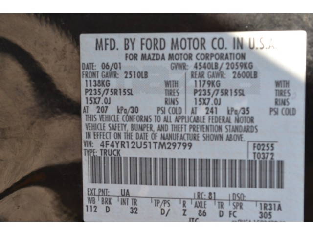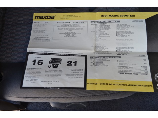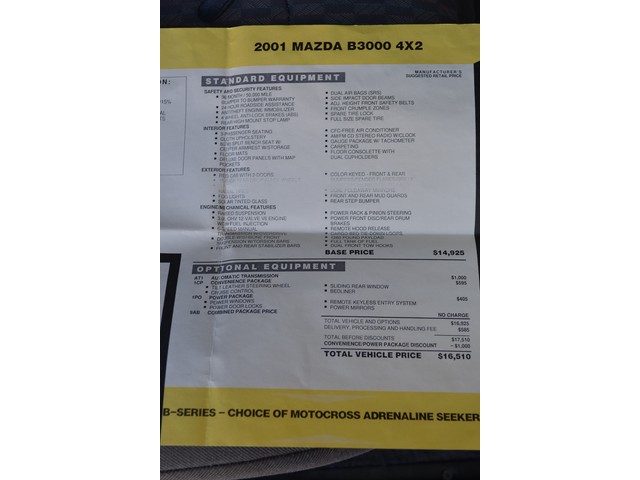 01 MAZDA B-3000 PICK UP, MINOR DAMAGE, EZ-FIX, "REBUILDABLE SALVAGE" NO RESERVE