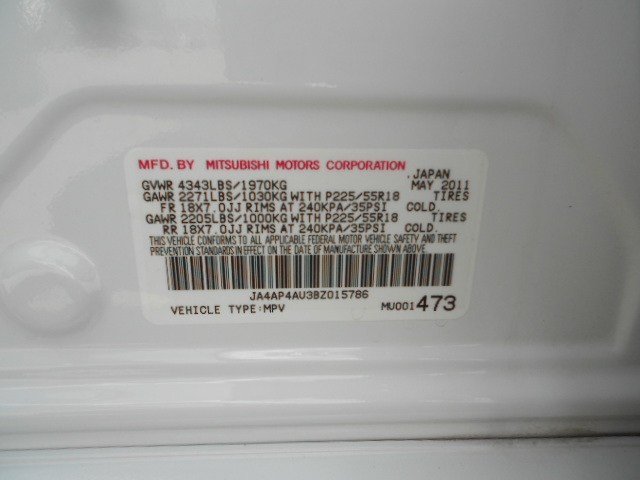 2011 Mitsubishi Outlander Sport JA4AP4AU3BZ015786