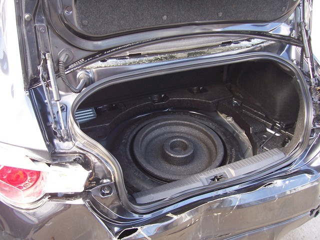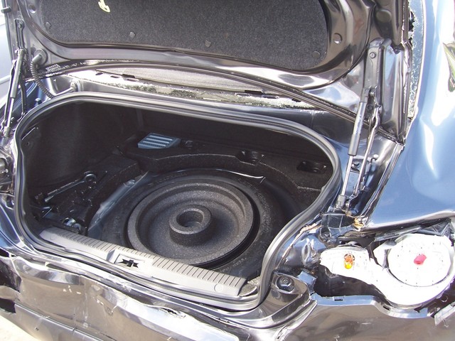 In the back, the car needs work on both quarter panels and the following parts: rear body panel, trunk lid, rear bumper cover, reinforcement bar, taillights.