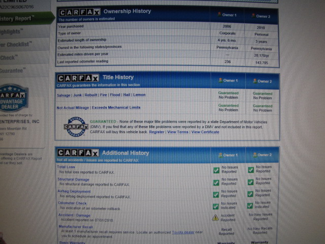 This 2006 Toyota Sienna AWD Limited is an absolutely fully loaded mini van from PA. In near excellent condition, with no paint work. Very well kept, maintained a nd taken care of. No noticeable dents, dings or scratches. Normal wear and teat in and out. Interior is clean with original Toyota Odor. Non-smokers vehicle. Mechanically the Sienna is in great shape. Engine and transsmission are in excellent condition. Suspension is tight. No leaks. No electrical issues. No warning lights on. Runs and drives 100%. All power options work absolutely flawless. Front tires are different brand from rear tires, but all four of them are same size and like new on the tread. Comes with all floor mats, One Key, One Remote, Owners Manual and what ever is on the pictures. For more info call us at 917-273-4066 Thank you