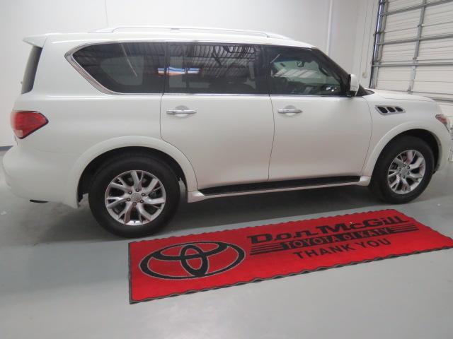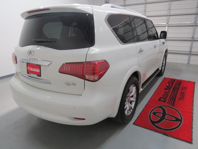 Theater Package (120V Power Outlet, Dual 7" Color Monitors, Heated 2nd-Row Seats, and Wireless Headphones (2)), Leather, Navigation System, and Power moonroof. JUST ARRIVED FOR MORE PHOTOS BY TEXT OR EMAIL OR TO SCHEDULE AN APPOINTMENT PLEASE CALL 1-888-865-4737 DON MCGILL TOYOTA KATY #1 CERTIFIED DEALER 7 YEARS IN A ROW. This 2012 QX56 is for Infiniti fans looking far and wide for a fantastic, low-mileage gem. Just one quick launch from a stoplight and you'll be SOLD! Nobody can resist the get-up-and-go in this SUV. 0% FINANCING FOR 72 on ALL Certified Cars, Trucks, and SUV for qualified buyers with approved credit. See store for details. THIS IS A CERTIFIED TOYOTA AND HAS A 7 YEAR 100,000 MILE POWERTRAIN WARRANTY,12 MONTH ROADSIDE ASSISTANCE,160 PT INSPECTION AND FREE CARFAX.