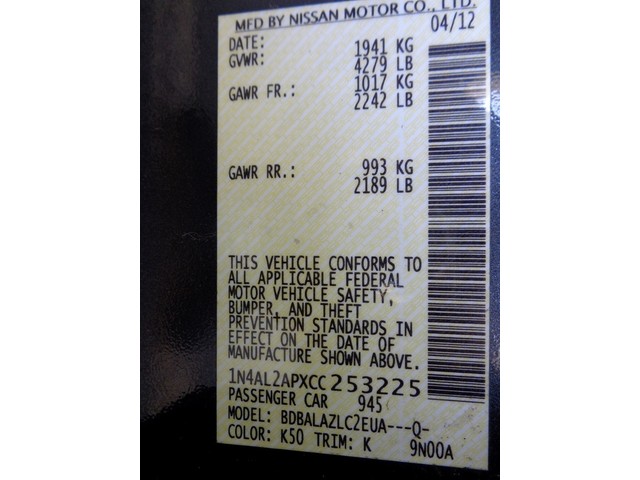 2012 NISSAN ALTIMA 2.5/2.5 S