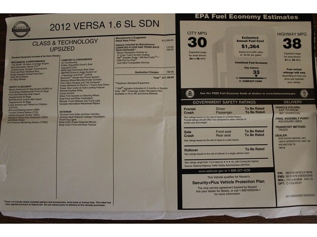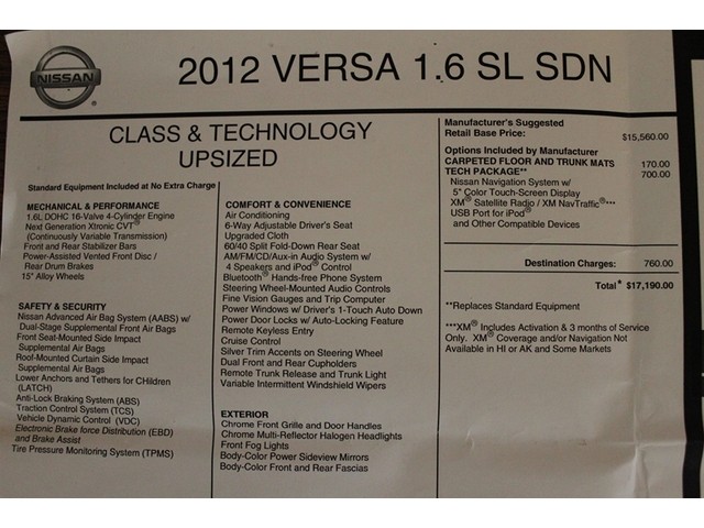 ENVY AUTOMOTIVE 2012 NISSAN VERSA SL SEDAN NAVIGATION/SAT/CD/AUX/USB/ GAS SAVER