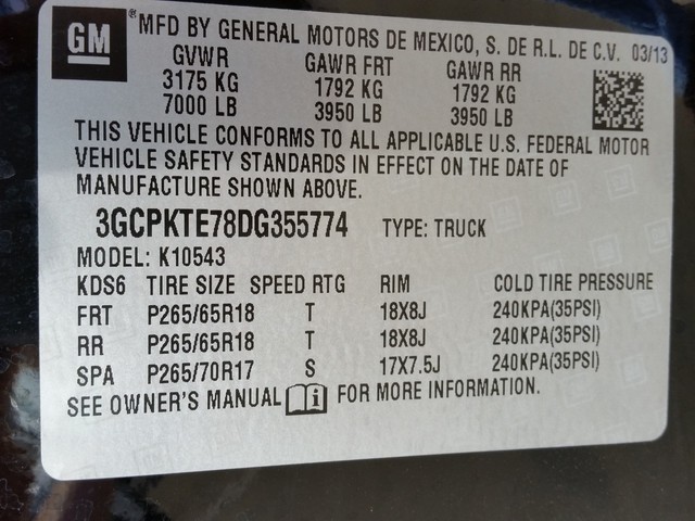 • VIN: 3GCPKTE78DG355774