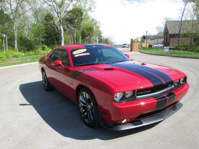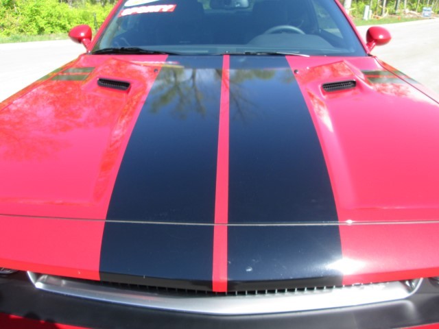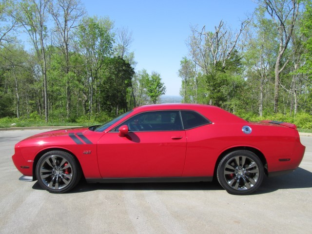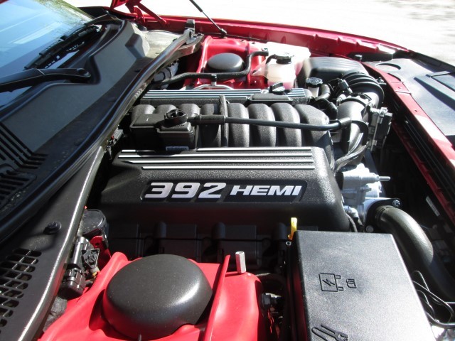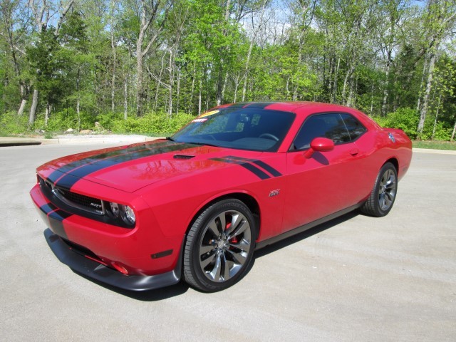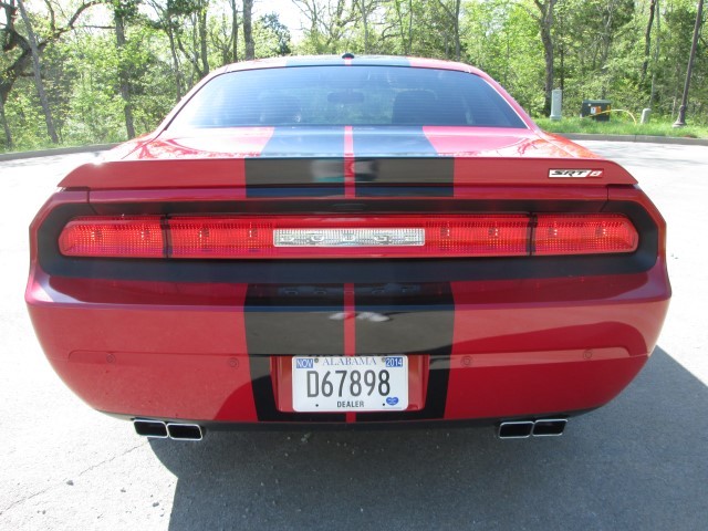 Ok if you like "PONY CARS" and I assume that you do or you would not be looking at this neat car, you have to love this one!  It is a 2013 Dodge Challenger SRT 8 "392" car with only 1,025 miles on it at the time of the pictures and video!  It is Redline Pearl with black leather and perforated suede seating.  It has a power drivers seat with heated front seats, power lumbar and a heated steering wheel.  It has the Black Vapor Chrome Alloy Wheels that are probably the best looking factory wheels of all time!  It has the black factory hood, top, trunk and fender side stripes, you talk about stunning this car is!  This rare car has a very rare 6 speed manual tranny that is "BIG" fun to drive!  The sound system is a Harmon Kardon along with NAVIGATION to make this a LUXURY PONY CAR with a great performance side along with a great ride and handling package! This neat & rare pony car that according to what I have read on the internet is 1 of 2406 SRT8 built for 2013!   The car is box stock and original in every way!  This would be a great car to put up and bring out 20 years from now and might return more on your money than having it in the bank!