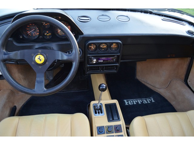 European Motor Studio is proud to offer this stunning 1989 Ferrari 328 GTS finished in beautiful Nero paint over Tan Connolly leather interior. This 328 left the Marranello production line in November of 1988 and was invoiced to Ferrari North America. The car sold new in Chicago Illinois to its first owner and spent two years in Chicago until moving to Florida all through the 90’s and early 2000’s. From there the car moved to Georgia with its 3rd owner where is has been ever since European Motor Studio acquired the car. The car has only covered a very low 29,640 original documented miles from brand new. The Nero paint is absolutely stunning and still has deep finish. The body is completely dent, ding, rust or accident free and free from any scratches (a few tiny stone chips in the front nose that has been touched up). The lower front skirt is perfect and does not show one mark on it. The interior of the car is all 100% original and in gorgeous condition. The Connolly leather interior shows extremely minimal wear and no fading or tears. The original carpeting is stain and tear free and the dash board does not show any damage or wrinkling. All of the switchgear is in excellent condition and damage free. The removable targa roof is in excellent condition and shows very minimal wear on the headliner. The targa roof still has its original black vinyl cover that sits behind the two seats when stowed. The rubber on the drivers side where the door meets the body of the car has one small tear in it (pic shown). This Ferrari 328 has just undergone a full engine out service including the fluids, the water pump and the cam belt 9 months ago. The car runs and drives superbly, its starts right up and does not smoke or miss. The car idles without any hesitations and accelerates smoothly and quickly. The transmission feels extremely solid and tight, free from any grinding or slipping. The brakes feel very solid and precise and do not show any signs of fade or grinding. The suspension and steering feel incredibly tight and precise free from any thumping, shakes or rattles. All of the electronics on the car are in working order including the taillights, headlights, turn signals, reverse lights, interior lights, dash lights, and side marker lights. The power windows door locks and mirrors are working as designed and the power antenna is still functioning properly. The AC blows ice cold and the heater is working as designed on the different fan speeds. All of the gauges appear to be reading and operating correctly and the gauge back lights all light up. The original Ferrari 5 spoke wheels are in excellent condition and free from any curb rash or damage and the tires are newer with about 70% tread life left. This Ferrari has a fairly extensive service history that comes with the car and also has its owners hand book, original radio, original Ferrari keys and the original Ferrari jack and belts in their original bag. This Ferrari comes with a free and clear title with a clean carfax and a Box A actual miles title. This is an outstanding example of the very last year of the desirable Ferrari 328 GTS in a stunning color combination.
